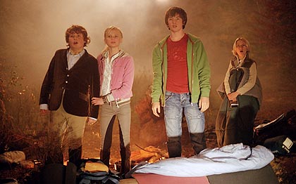 Apropos Genie: In der aktuellen Story dreht sich alles um die sog. „Mind-Machine“, mit der Kevin (Hauke Diekamp) den bundesweiten Wettbewerb „Jugend forscht“ gewonnen hat. Als er seine Erfindung vor der ganzen Schule präsentieren soll, flüchtet er nach einigen unverständlichen Sätzen spurlos von der Bühne. Was anfänglich wie reiner „Beziehungsstreß“ aussieht, entpuppt sich schnell als mysteriöser Fall für TKKG, bei dem es gilt, das Geheimnis des Biolehrers (Ulrich Noethen) ebenso wie das von drei verschwundenen Schülern zu klären. Im Gegensatz zur Hörspielserie sind Tim, Karl, Klößchen und Gaby optisch (als auch stimmlich) erfreulicherweise an ihren Ursprung zurückgekehrt, sind wieder liebenswert pubertierende Teenies, die sich mit erster Liebe, aber auch mit ersten Verlusten auseinandersetzen müssen. Alle vier Schauspieler machen ihre Sache hervorragend, wenn es darum geht, Seiten an den Figuren zu zeigen, die bislang meist im verborgenen blieben. Anders als Kevin hat bspw. Karl bislang noch keinen seiner ersehnten Erfinderpreise gewonnen, und das, obwohl Hund Oskar ein im Laufe der Handlung wegweisendes, von ihm kreiertes, Funk-Hundehalsband trägt.