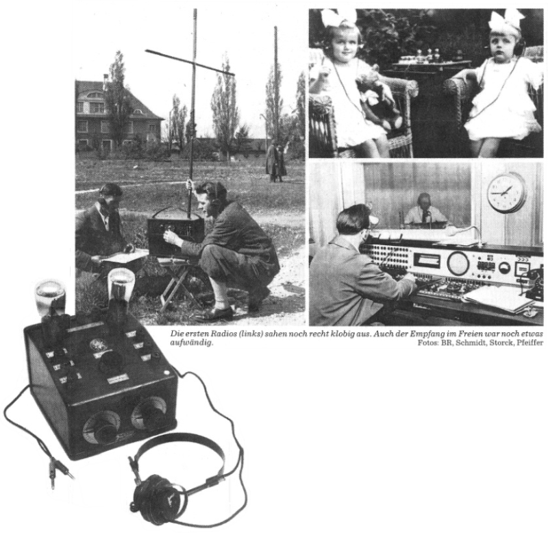 Nur ein halbes Jahr nach der Münchner Premiere wurde auch aus Nürnberg gesendet. Und bald spielte ein eigenes bayerisches Rundfunk-Orchester auf. Die Hörer lauschten gefesselt dem Esperanto-Sprachunterricht, dem Frauenfunk, de, Weiß Ferdl, dem Valentin, den Frühgymnastik-Senungen, dem Landfunk und 1931 - von 82 europäischen Sendern übertragen - dem Interview des bayerischen Radioreproters Otto Willi Gail mit Auguste Piccard, Ballonfahrer. Kurz zuvor war aus der "Deutschen Stunde" die "Bayerische Rundfunk GmbH" geworden, die samt neuem Sendergebäude von nationalsozialistischen Gehirnwäschern für großdeutscehn Schmarrn benutzt wurde. Gut, dass die Amerikaner am 12. Mai 1945 den Jazz in Bayerns Boxen brachten.
